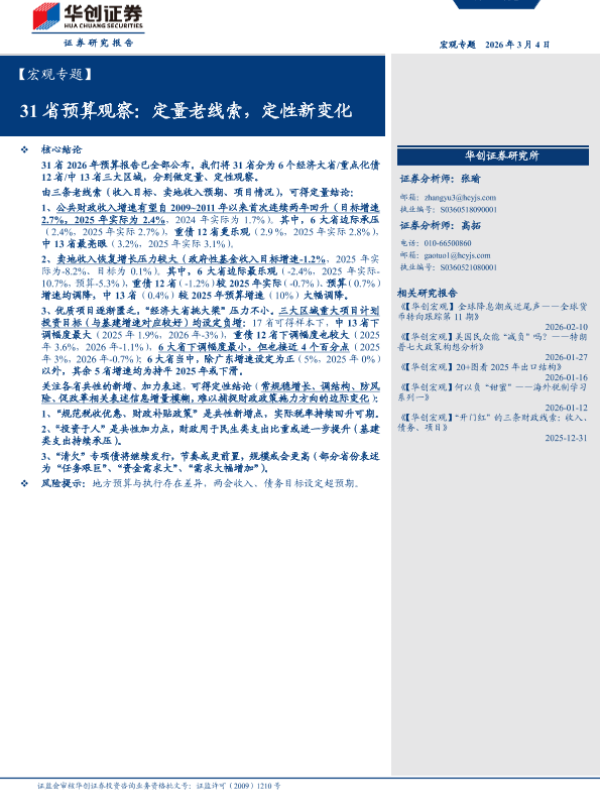 【华创证券】【202602】31省预算观察:定量老线索,定性新变化-24页 证券期货研究报告