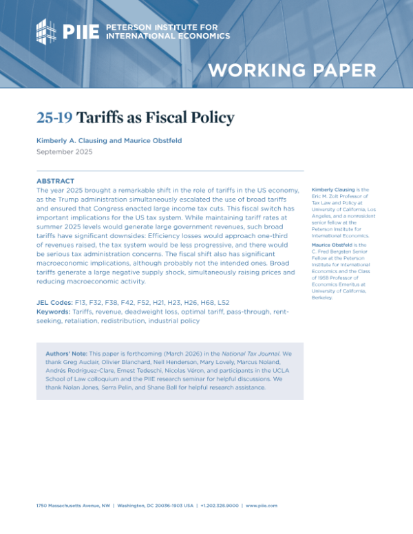 【彼得森经济研究所】【202509】Tariffs as Fiscal Policy-46页 政策文件