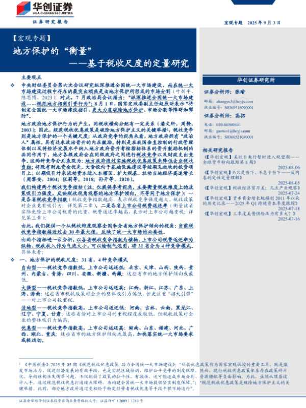 【华创证券】【202509】地方保护的“衡量”——基于税收尺度的定量研究-15页 证券期货研究报告