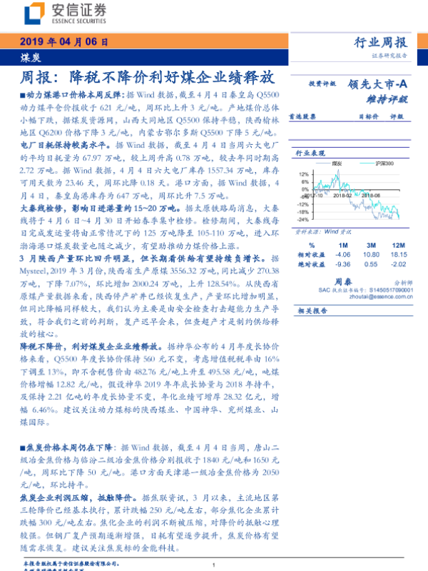 【安信证券】【20190406】20190406-安信证券-煤炭行业周报:降税不降价利好煤企业绩释放-23页 行业研究