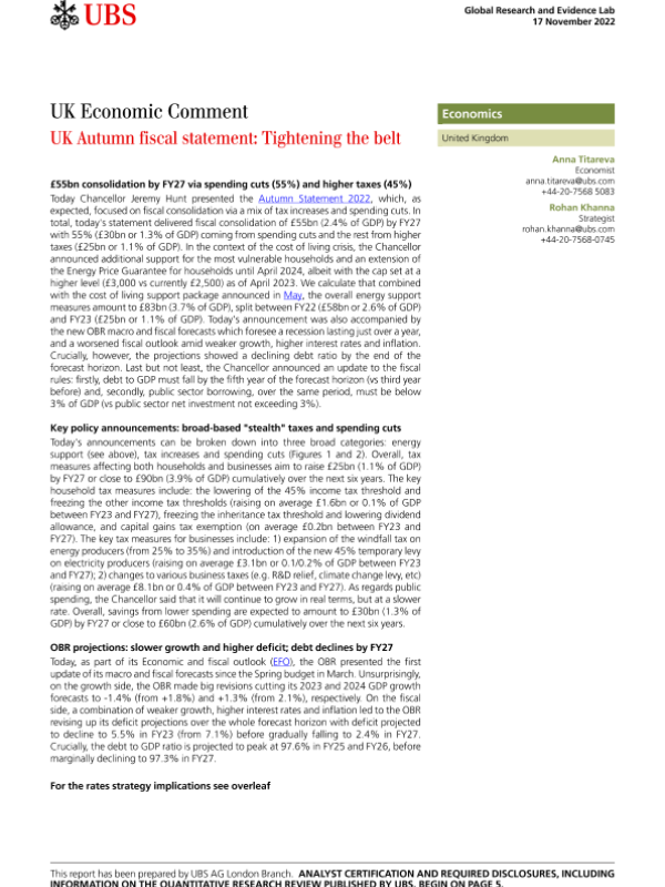 【UBS AG London Branch】【20221117】UK Autumn fiscal statement Tightening the belt-8页 行业研究