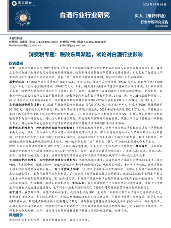 【国金证券】【20240705】20240705-国金证券-白酒行业行业研究:消费税专题:税改东风渐起,试论对白酒行业影响-21页 行业研究