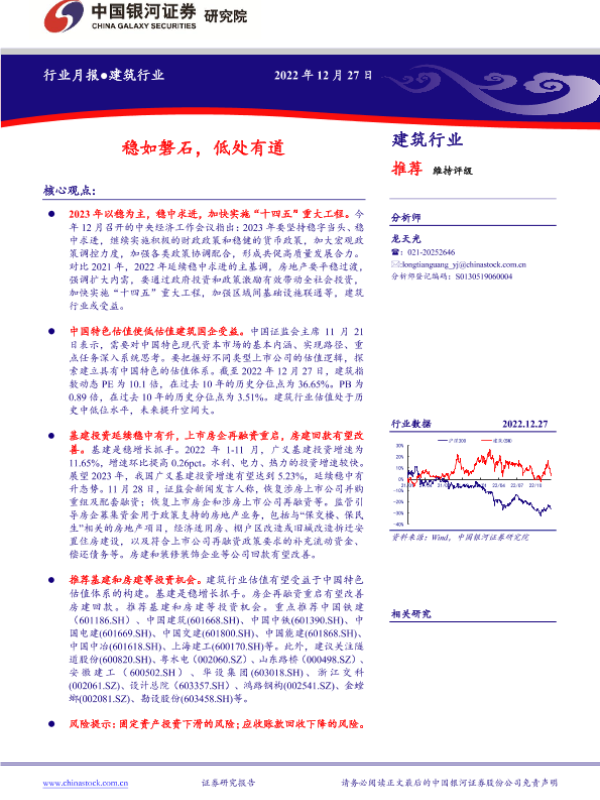 【银河证券】【20221227】建筑行业月报:稳如磐石,低处有道-15页 行业研究