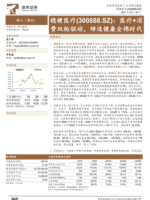 【德邦证券】【20210629】稳健医疗:医疗+消费双轮驱动,缔造健康全棉时代-27页 行业研究