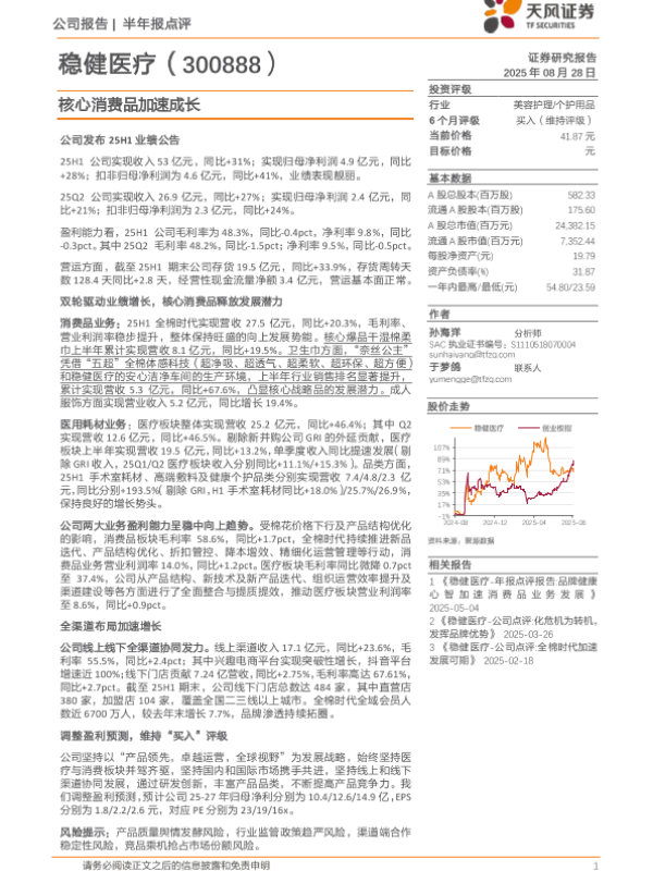 【公司报告|半年报点评】【20250828】稳健医疗-核心消费品加速成长-4页 证券期货研究报告