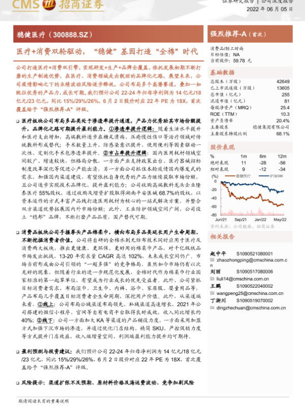 【海通证券】【20220605】医疗+消费双轮驱动,“稳健”基因打造“全棉”时代-30页 证券期货研究报告