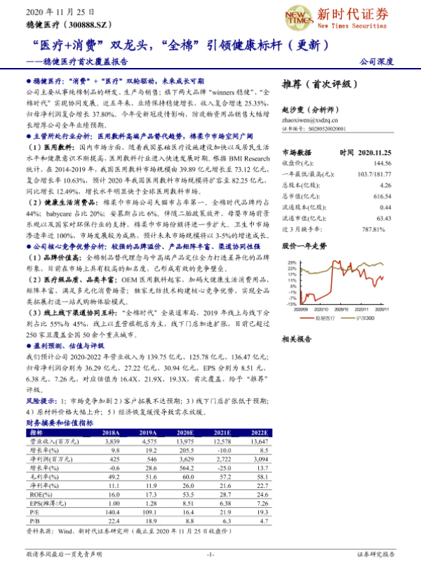 【新时代证券】【20201125】稳健医疗首次覆盖报告:“医疗+消费”双龙头,“全棉”引领健康标杆-31页 行业研究