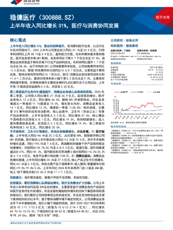 【国信证券】【202504】稳健医疗(300888)上半年收入同比增长31%,医疗与消费协同发展-10页 证券期货研究报告