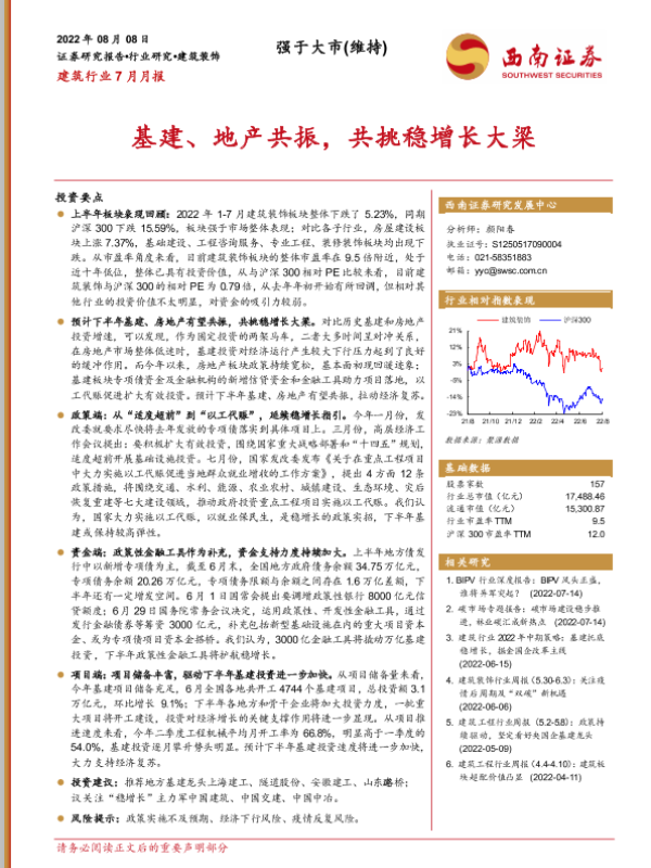 【西南证券】【20220808】建筑行业7月月报:基建、地产共振,共挑稳增长大梁-14页 行业研究