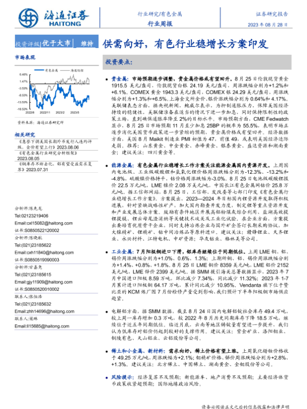【海通证券】【20230828】20230828-海通证券-有色金属行业周报:供需向好,有色行业稳增长方案印发-14页 行业研究