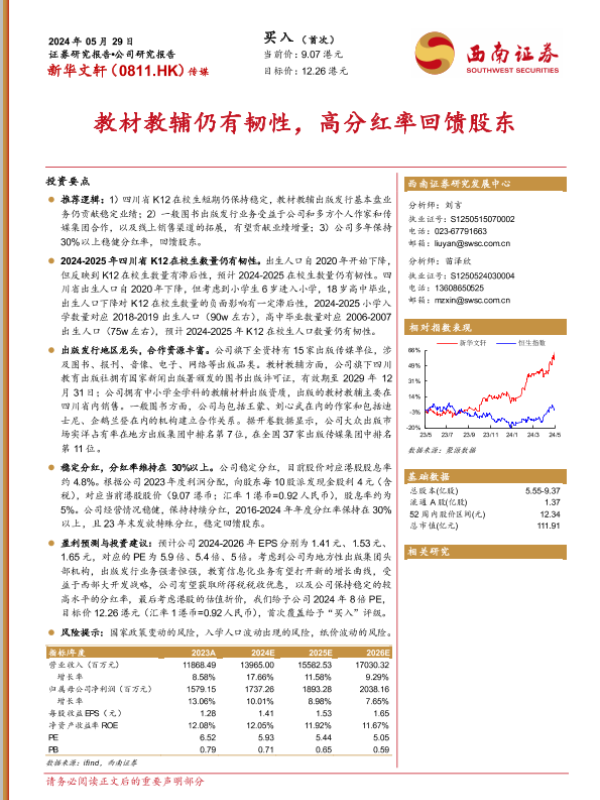 【西南证券】【20240529】新华文轩(0811.HK)教材教辅仍有韧性,高分红率回馈股东-18页 行业研究
