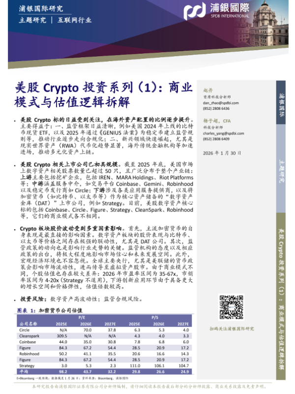 【浦银国际】【202601】美股 Crypto投资系列(1):商业模式与估值逻辑拆解-30页 证券期货研究报告