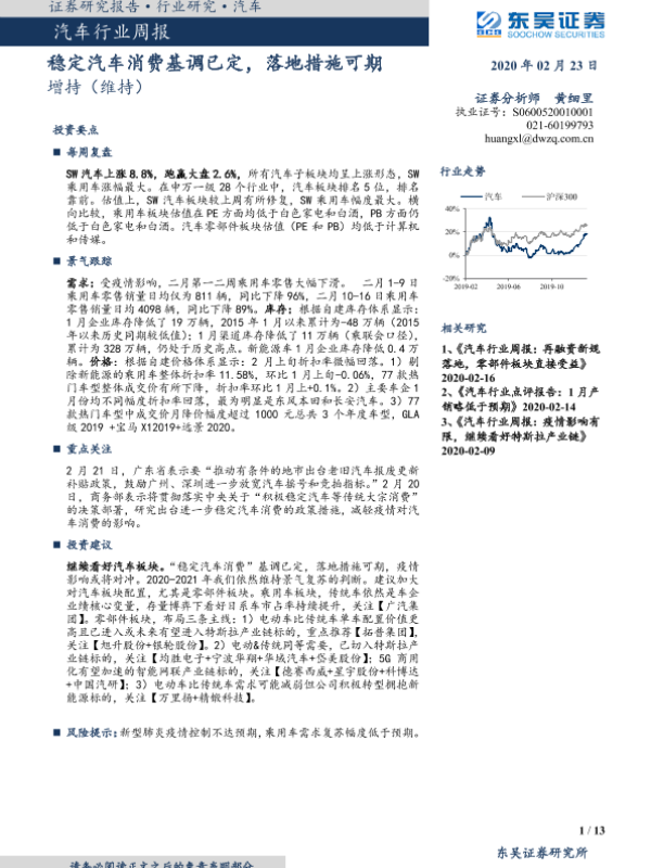 【东吴证券】【20200223】汽车行业周报:稳定汽车消费基调已定,落地措施可期-13页 行业研究