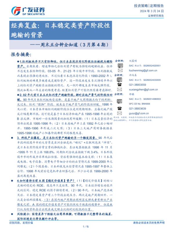 【广发证券】【20240324】经典复盘:日本稳定类资产阶段性跑输的背景-15页 行业研究