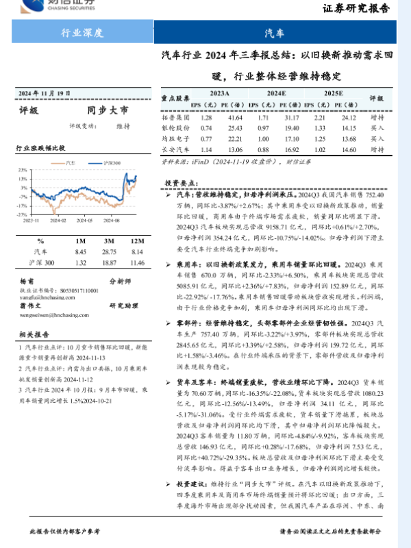 【财信证券】【20241119】汽车行业2024年三季报总结:以旧换新推动需求回暖,行业整体经营维持稳定-25页 行业研究