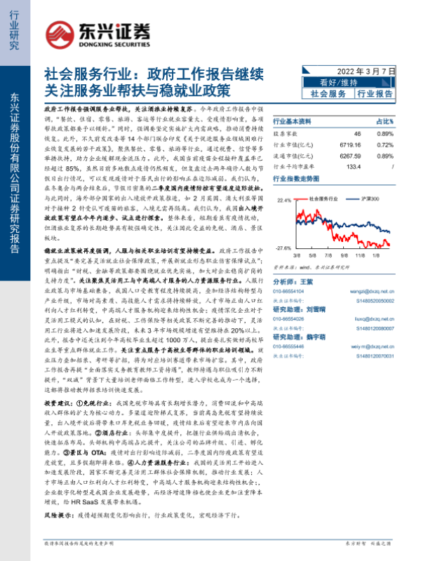 【东兴证券】【20220307】社会服务行业:政府工作报告继续关注服务业帮扶与稳就业政策-6页 行业研究