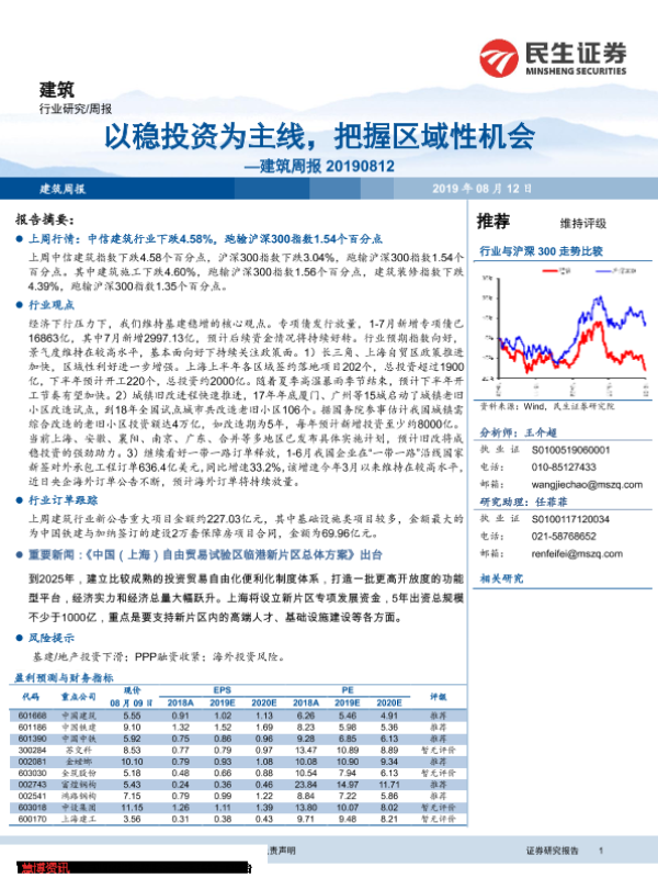 【民生证券】【20190812】建筑周报:以稳投资为主线,把握区域性机会-18页 行业研究