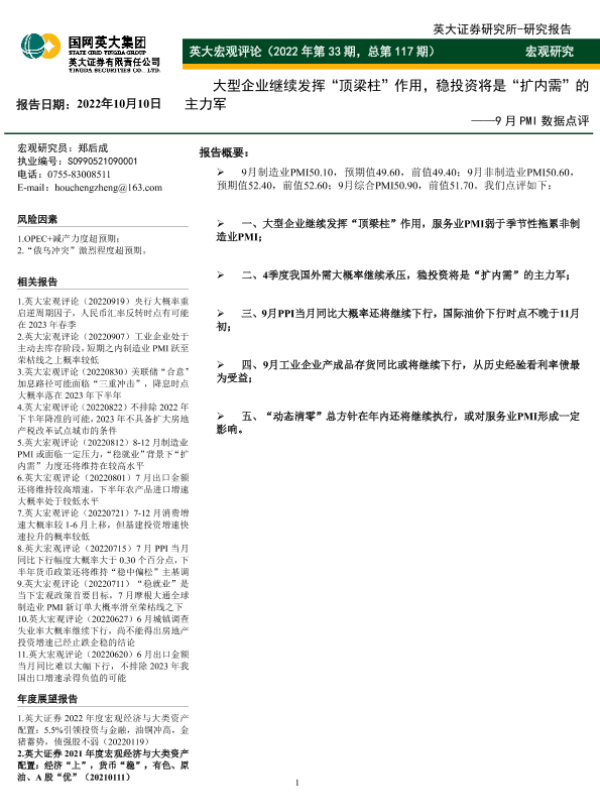 【英大证券】【20221010】9月PMI数据点评:大型企业继续发挥“顶梁柱”作用,稳投资将是“扩内需”的主力军-12页 宏观策略