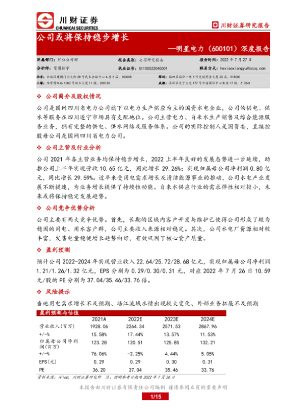 【川财证券】【20220727】公司或将保持稳步增长-15页 证券期货研究报告