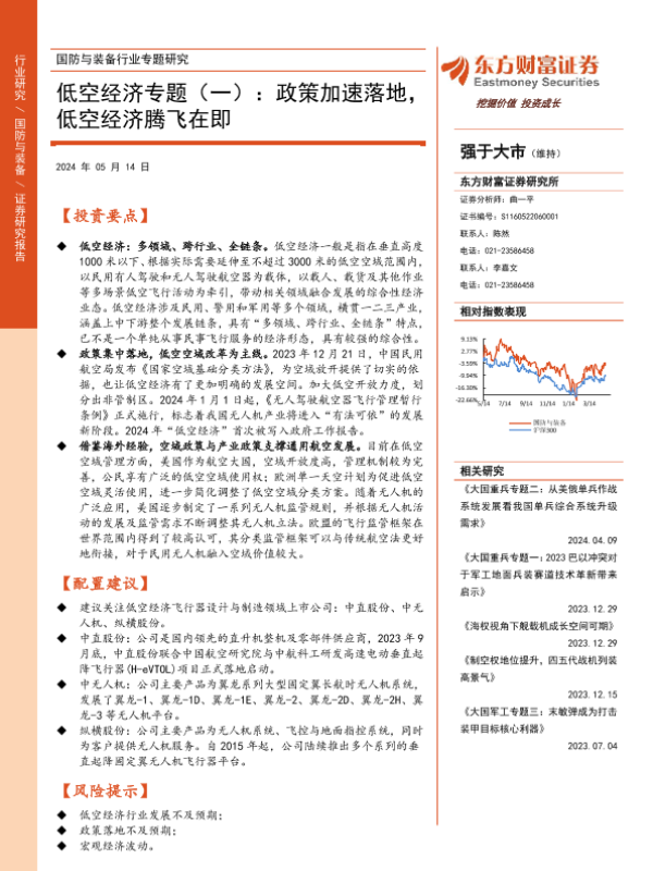 【东方财富证券】【20240514】国防与装备行业专题研究-低空经济专题(一):政策加速落地,低空经济腾飞在即-21页 行业研究