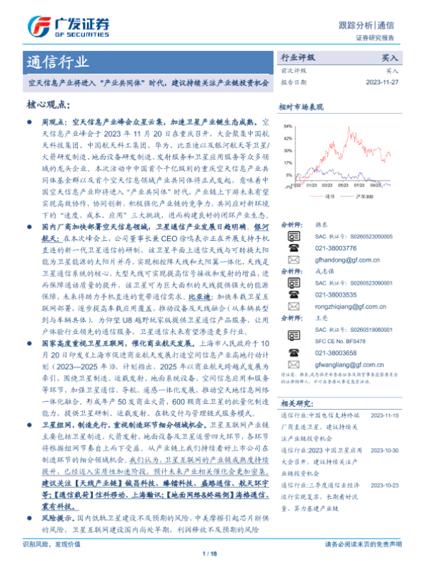 【广发证券】【20231127】通信行业:空天信息产业将进入“产业共同体”时代,建议持续关注产业链投资机会-18页 行业研究
