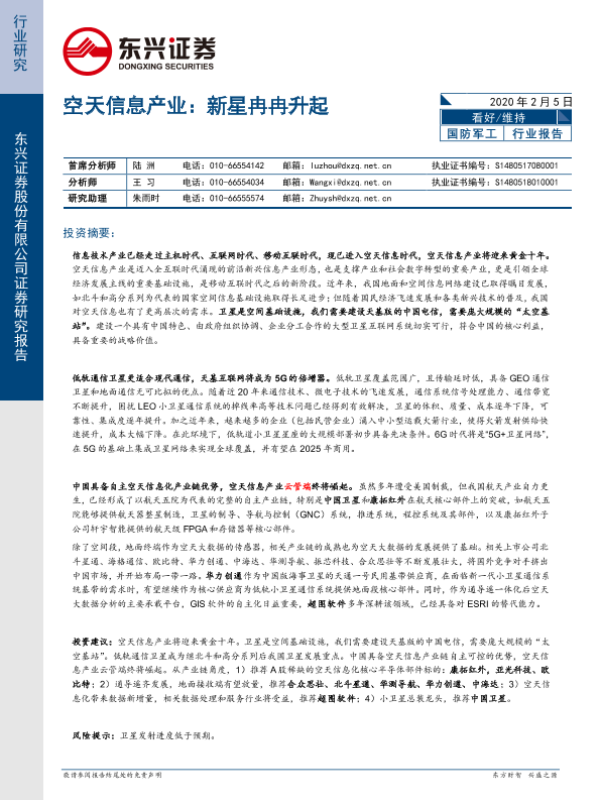 【东兴证券】【20200205】空天信息产业:新星冉冉升起-40页 行业研究