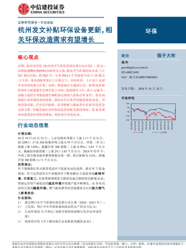【中信建投证券】【20241028】环保行业:杭州发文补贴环保设备更新,相关环保改造需求有望增长-12页 行业研究