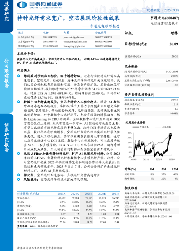 【国泰海通证券】【202509】特种光纤需求宽广,空芯展现阶段性成果-15页 证券期货研究报告