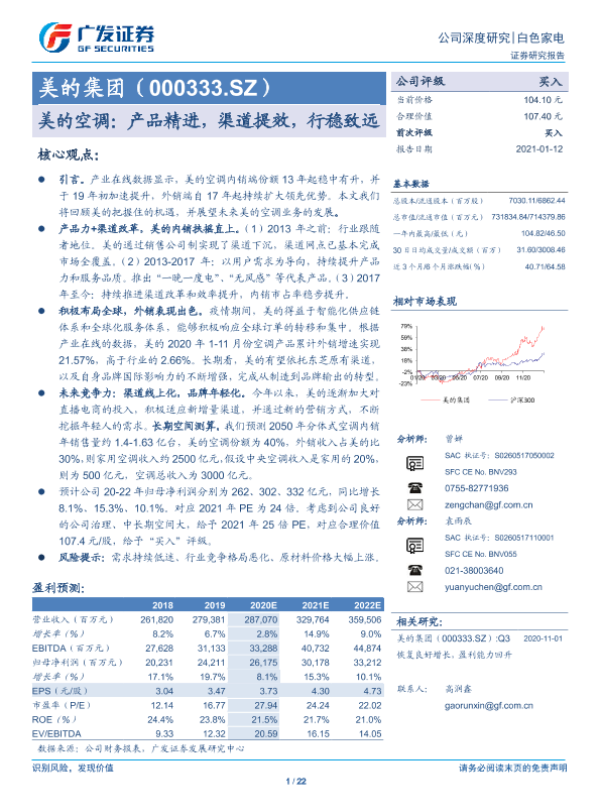 【广发证券】【20210112】美的空调:产品精进,渠道提效,行稳致远-22页 行业研究