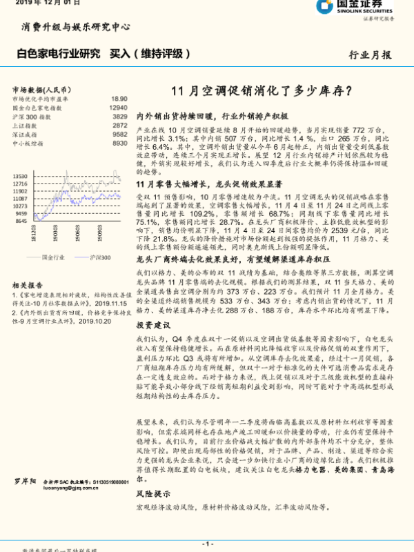 【国金证券】【20191201】白色家电行业月报:11月空调促销消化了多少库存?-11页 行业研究