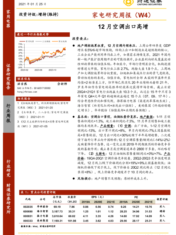 【财通证券】【20210125】20210125-财通证券-家电研究周报(W4):12月空调出口高增-21页 行业研究