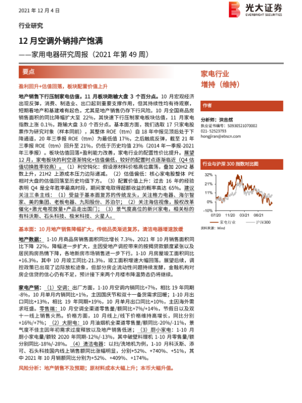 【光大证券】【20211204】20211204-光大证券-家用电器研究周报(2021年第49周):12月空调外销排产饱满-27页 行业研究