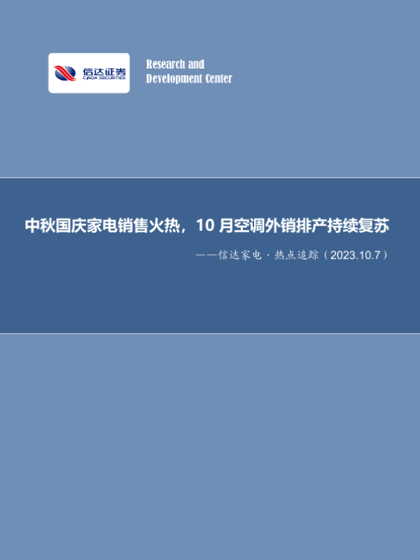 【信达证券】【20231007】家用电器行业周报:中秋国庆家电销售火热,10月空调外销排产持续复苏-13页 行业研究