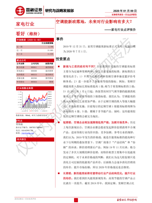 【国融证券】【20200109】家电行业点评报告:空调能新政落地,未来对行业影响有多大?-6页 行业研究