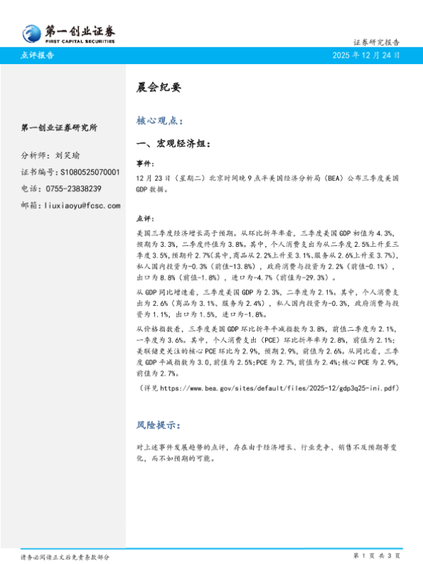 【第一创业证券】【202512】晨会纪要-3页 会议纪要