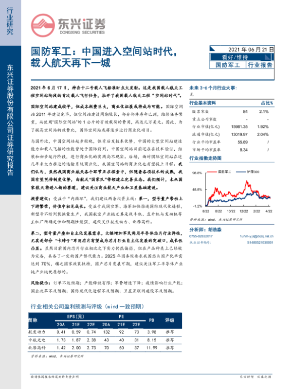 【东兴证券】【20210621】国防军工:中国进入空间站时代,载人航天再下一城-17页 行业研究