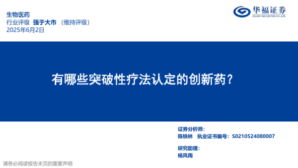 【华福证券】【20250602】生物医药行业定期:有哪些突破性疗法认定的创新药?-30页 行业研究