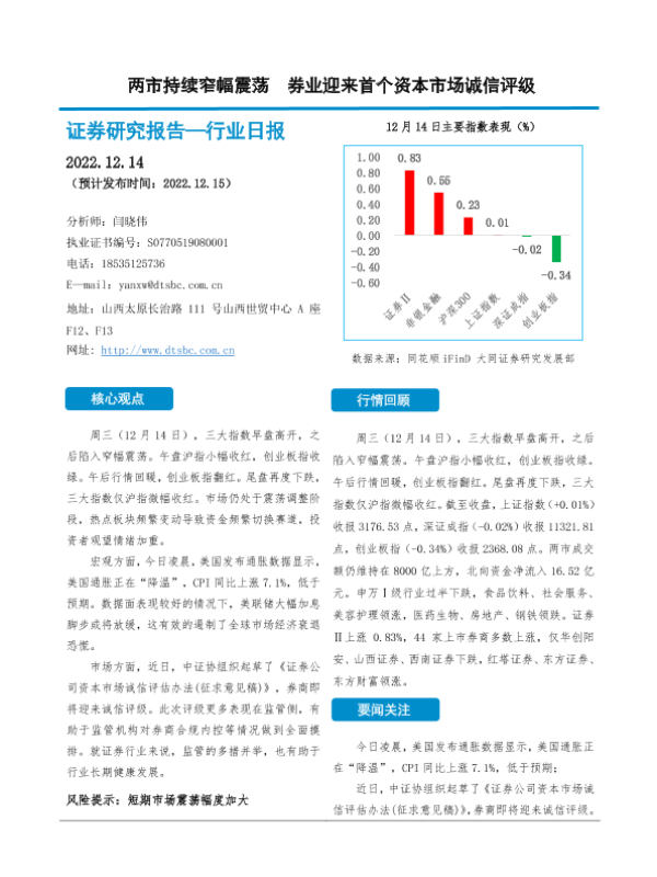 【大同证券】【20221214】两市持续窄幅震荡 券业迎来首个资本市场诚信评级-10页 行业研究