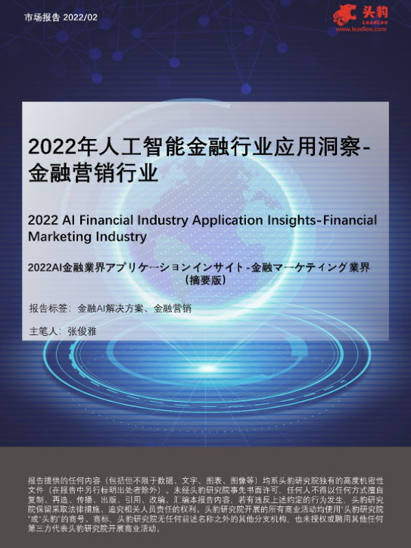 【头豹研究院】【2022】2022年人工智能金融行业应用洞察-金融营销行业-31页 行业研究