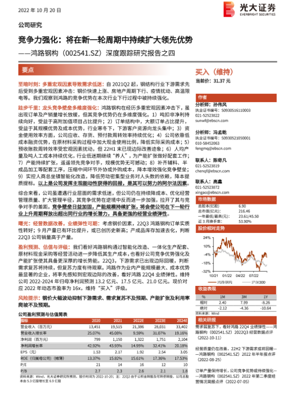 【光大证券】【20221020】竞争力强化:将在新一轮周期中持续扩大领先优势——鸿路钢构(002541.SZ)深度跟踪研究报告之四-22页 行业研究
