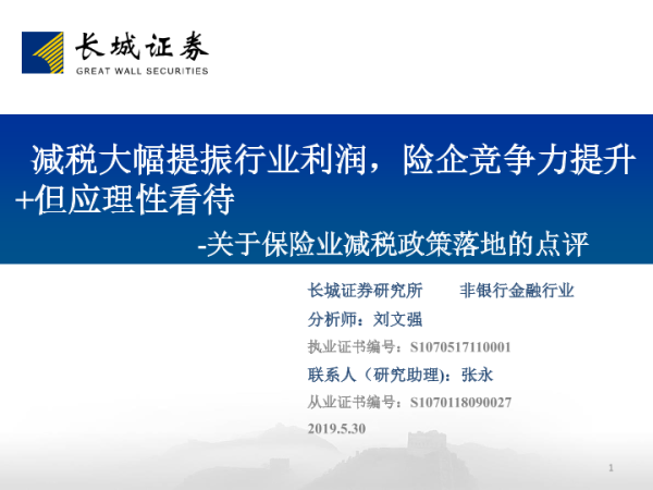 【长城证券】【20190530】关于保险业减税政策落地的点评-12页 行业研究