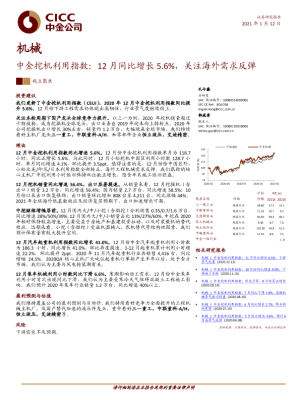 【中金公司】【20210112】中金挖机利用指数:12月同比增长5.6%,关注海外需求反弹-9页 行业研究
