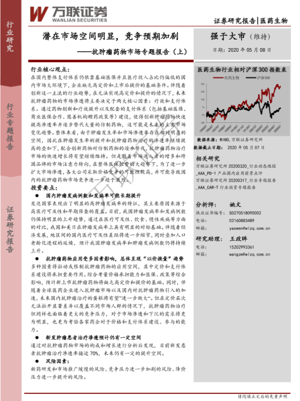 【万联证券】【20200508】抗肿瘤药物市场专题报告(上):潜在市场空间明显,竞争预期加剧-34页 行业研究