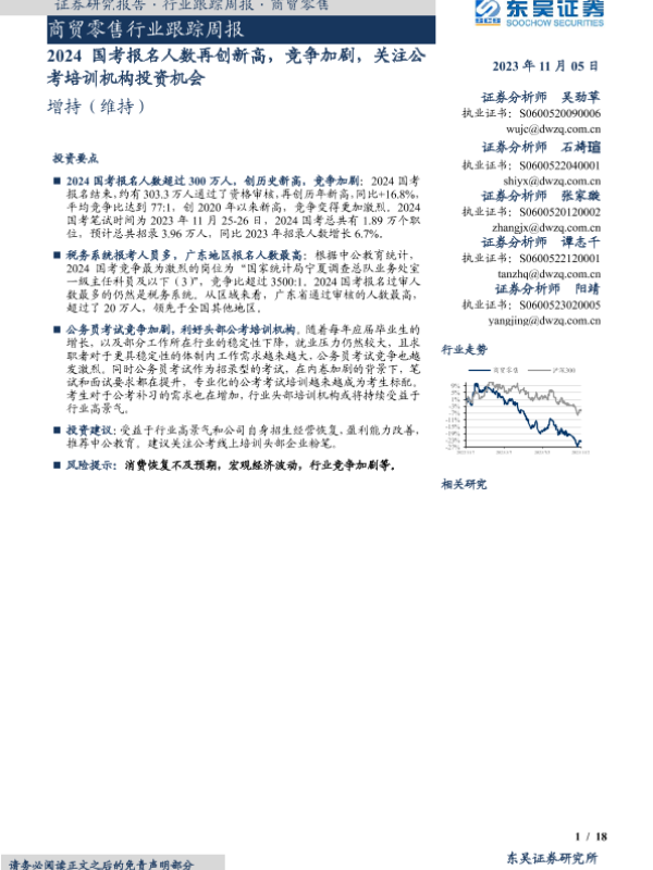 【东吴证券】【20231105】2024国考报名人数再创新高,竞争加剧,关注公考培训机构投资机会-18页 行业研究