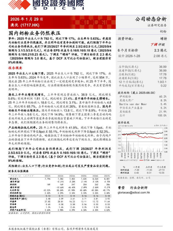 【国投证券国际】【202601】国内奶粉业务仍然承压-5页 证券期货研究报告