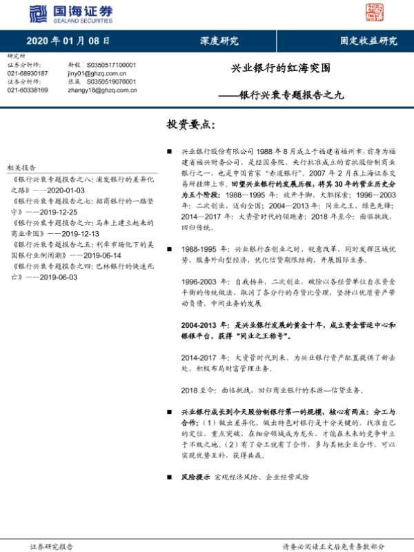 【国海证券】【20200108】银行兴衰专题报告之九:兴业银行的红海突围-23页 行业研究