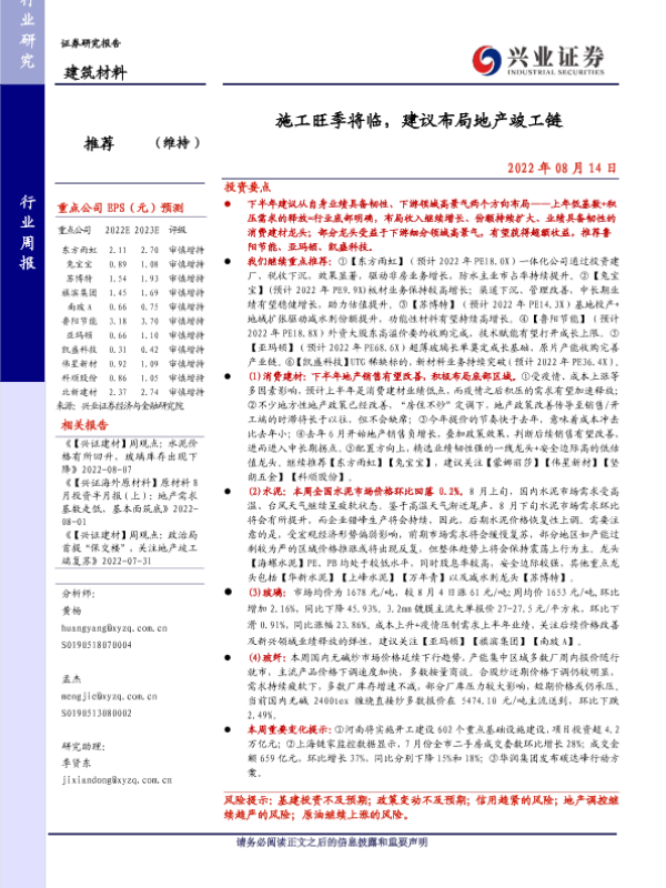 【兴业证券】【20220814】施工旺季将临,建议布局地产竣工链-23页 行业研究