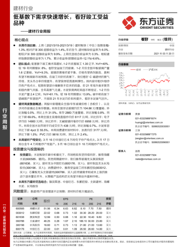 【东方证券】【20210320】低基数下需求快速增长,看好竣工受益品种-23页 行业研究