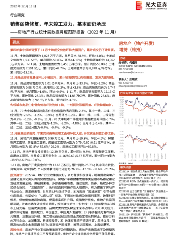 【光大证券】【20221216】销售弱势修复,年末竣工发力,基本面仍承压-12页 行业研究