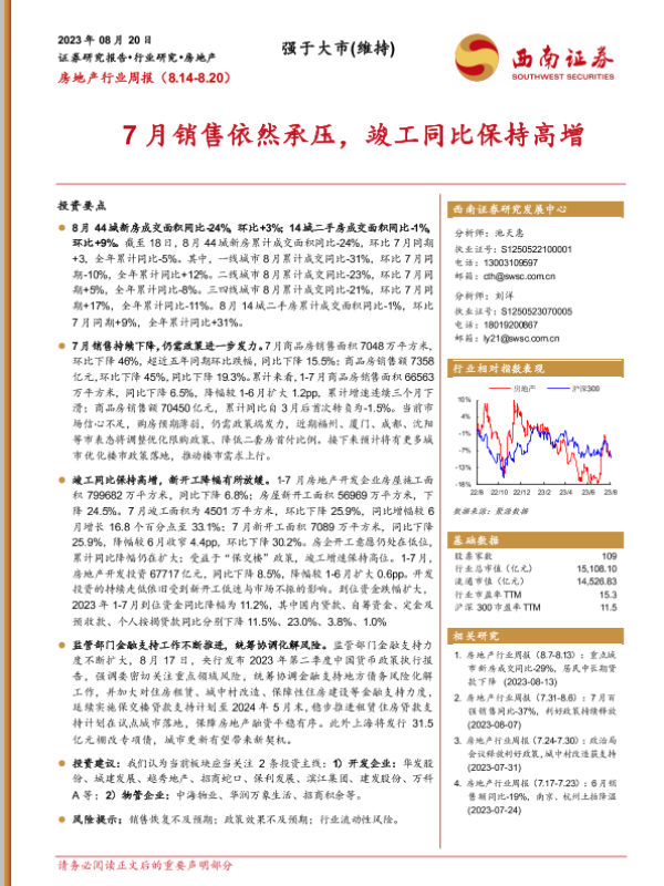 【西南证券】【20230820】7月销售依然承压,竣工同比保持高增-15页 行业研究